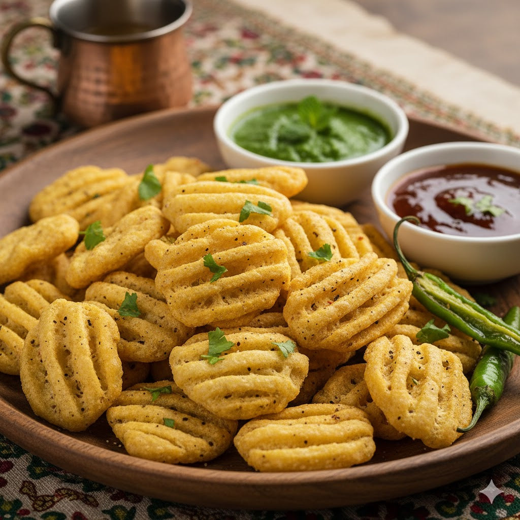 Ganthiya is a beloved Gujarati delicacy—a crispy, golden-fried savory snack that embodies the authentic flavors of Gujarat. Made with a traditional blend of spices and gram flour, each piece delivers a satisfying crunch with subtle notes of cumin and asafoetida. Perfect for tea time, festivals, or whenever you crave an authentic taste of Gujarat's culinary heritage. This timeless treat brings the warmth of home cooking to your table.